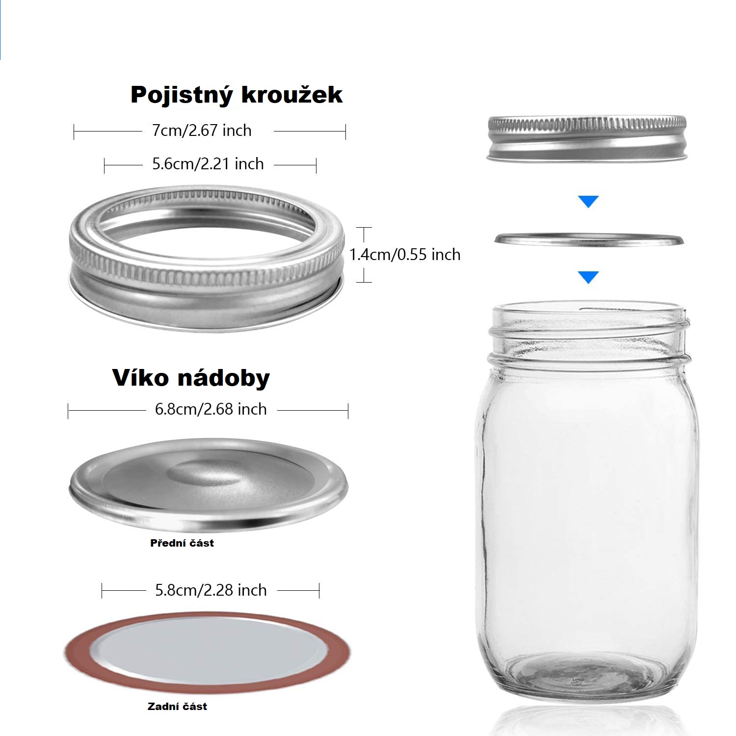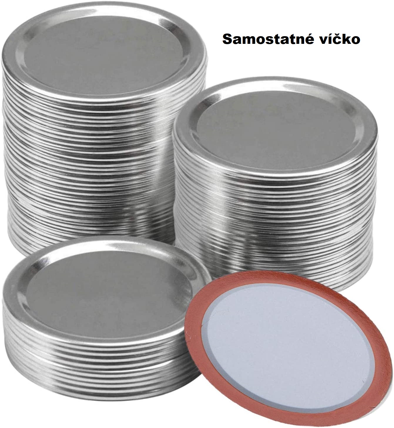 Deckel für das Konservieren von Vakuumdosen. Kein Sicherheitsring. Typ mit geteiltem Deckel. Sehr gut versiegelt, luftdicht, sicher. Ideal für die langfristige Lagerung von Lebensmitteln. Verschlussdurchmesser 68 mm.